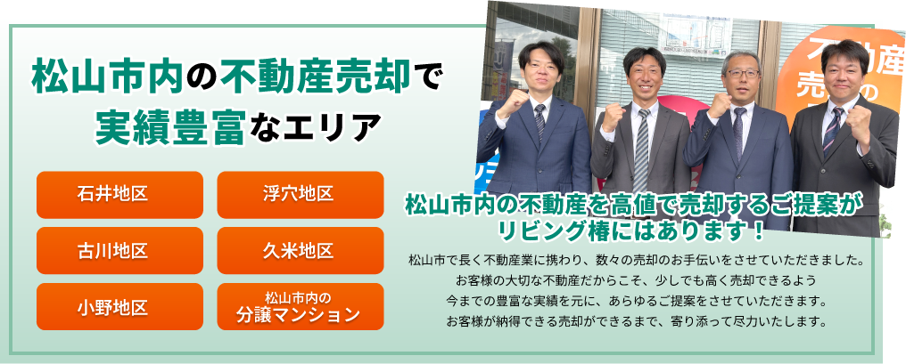又、地元専門の不動産サイト「松山不動産.COM」を運営しており、地元で不動産をお探しの方へのアピールに関しましても、万全の態勢を整えております。