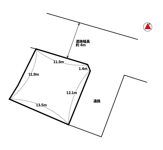 | 接道状況 | 北 幅員:約4.0m 公道 接面:約11.3m |