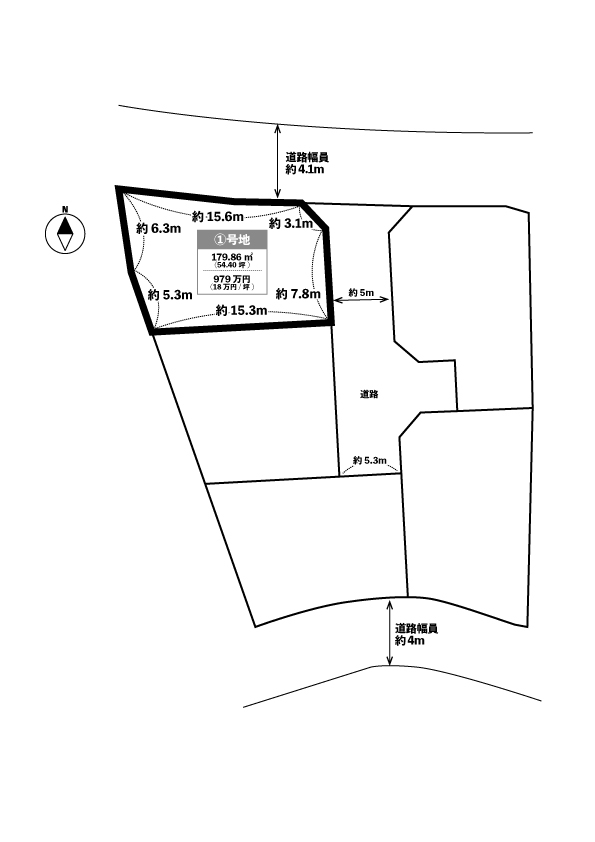| 接道状況 | 北 幅員:約4.1m 公道 ・ 南 幅員:約4.0m 公道 |