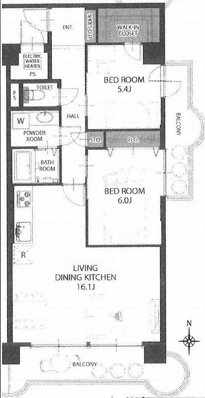 建物面積 66.54㎡ 壁芯 / 間取り 2LDK| 物件番号 | 12133 |