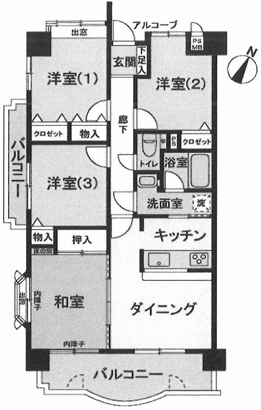 建物面積 72.56㎡ 壁芯 / 間取り 4DK