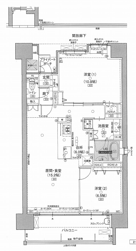 建物面積 79.87㎡ 壁芯 / 間取り 2LDK