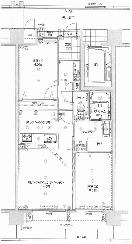 建物面積 60.77㎡ 壁芯 / 間取り 2LDK