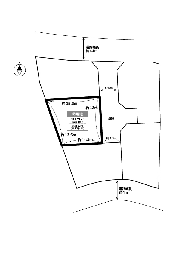 | 接道状況 | 北 幅員:約4.1m 公道 ・ 南 幅員:約4.0m 公道 |