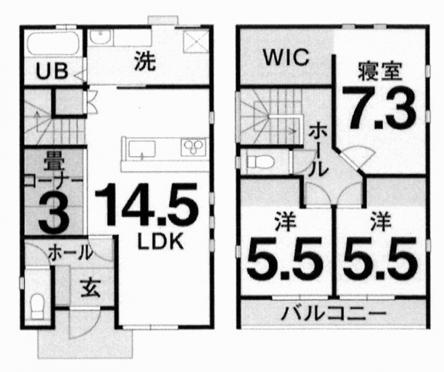 土地面積 156.63 / 建物面積 92.73㎡ / 間取り 3SLDK