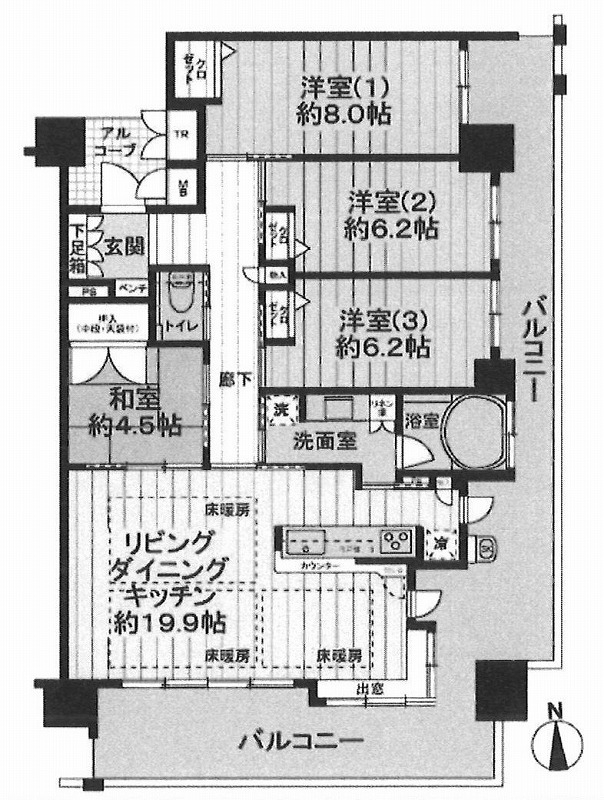 東南角部屋で眺望・日当たり良好♪ ペット飼育可能♪ リビング床暖房など設備充実♪ 専有面積100m2超の広々としたお部屋♪