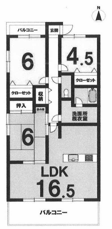 | 備考 | ●エレベーター1基 ●ウォシュレット ●組合費:月額300円 ●駐車場は2年毎に抽選 ●リフォーム内容:キッチン・浴室・トイレ・洗面台・クロス・フローリング・和室・エアコン新設 |