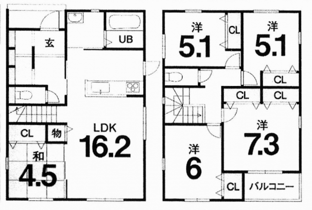 土地面積 182.07 / 建物面積 113.44㎡ / 間取り 5LDK