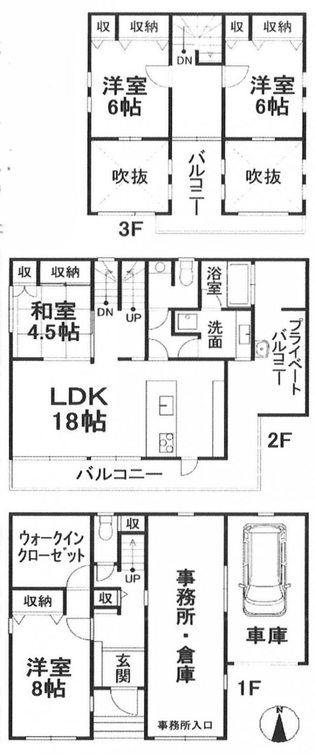 事務所と車庫のある、3階建ての中古戸建♪