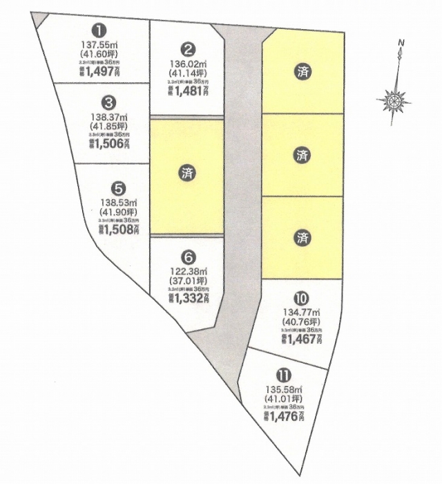 | 備考 | ●上水道負担金250,000円・下水道受益者負担金@250円・諸経費として境界基礎工事費13,000円/m(税別)の別途料金要 |